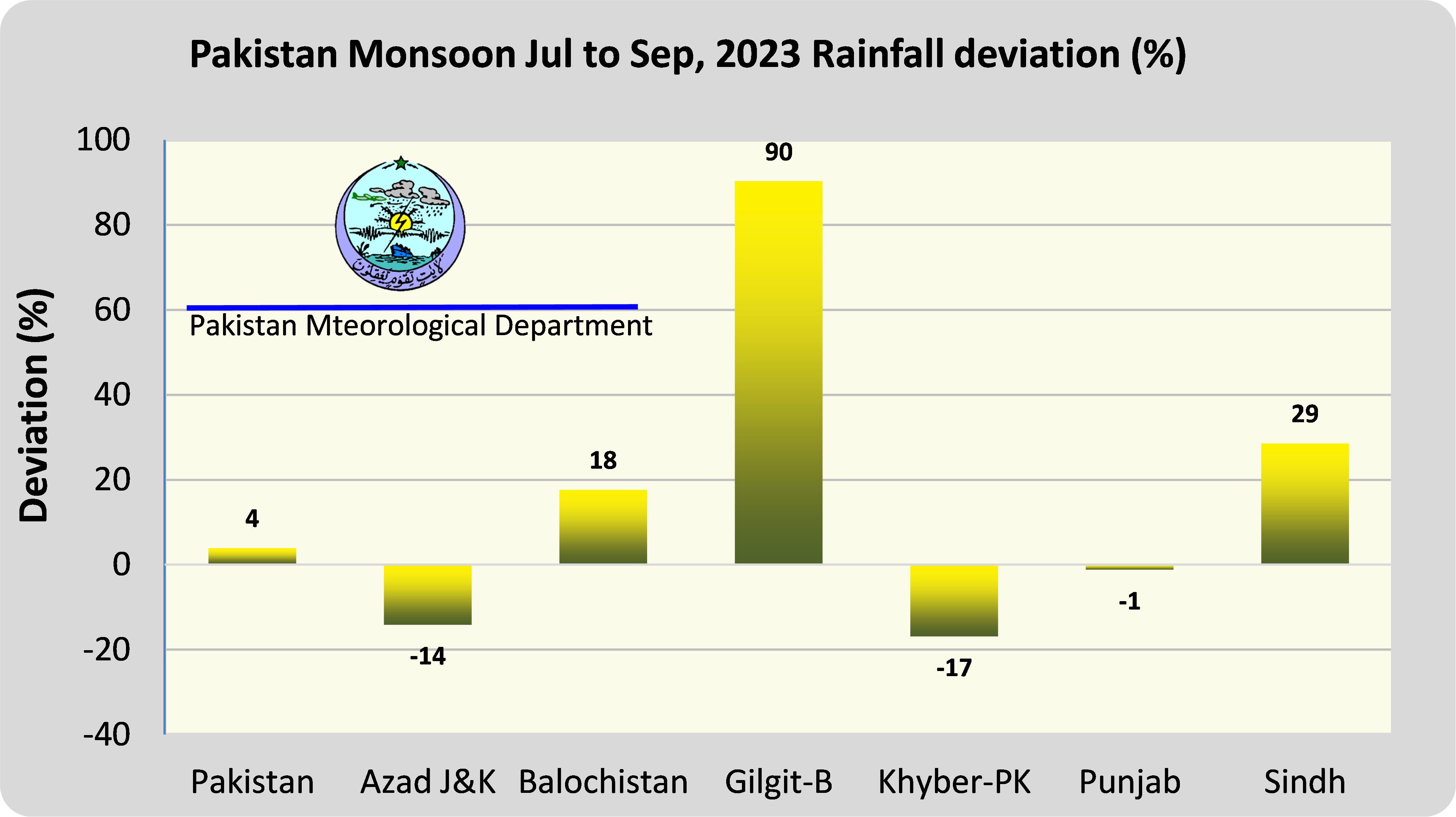 - Regions with excessively above-average rainfall included GB (+233%), Sindh (+143%), Balochistan (+111%), and Punjab (+47%).
